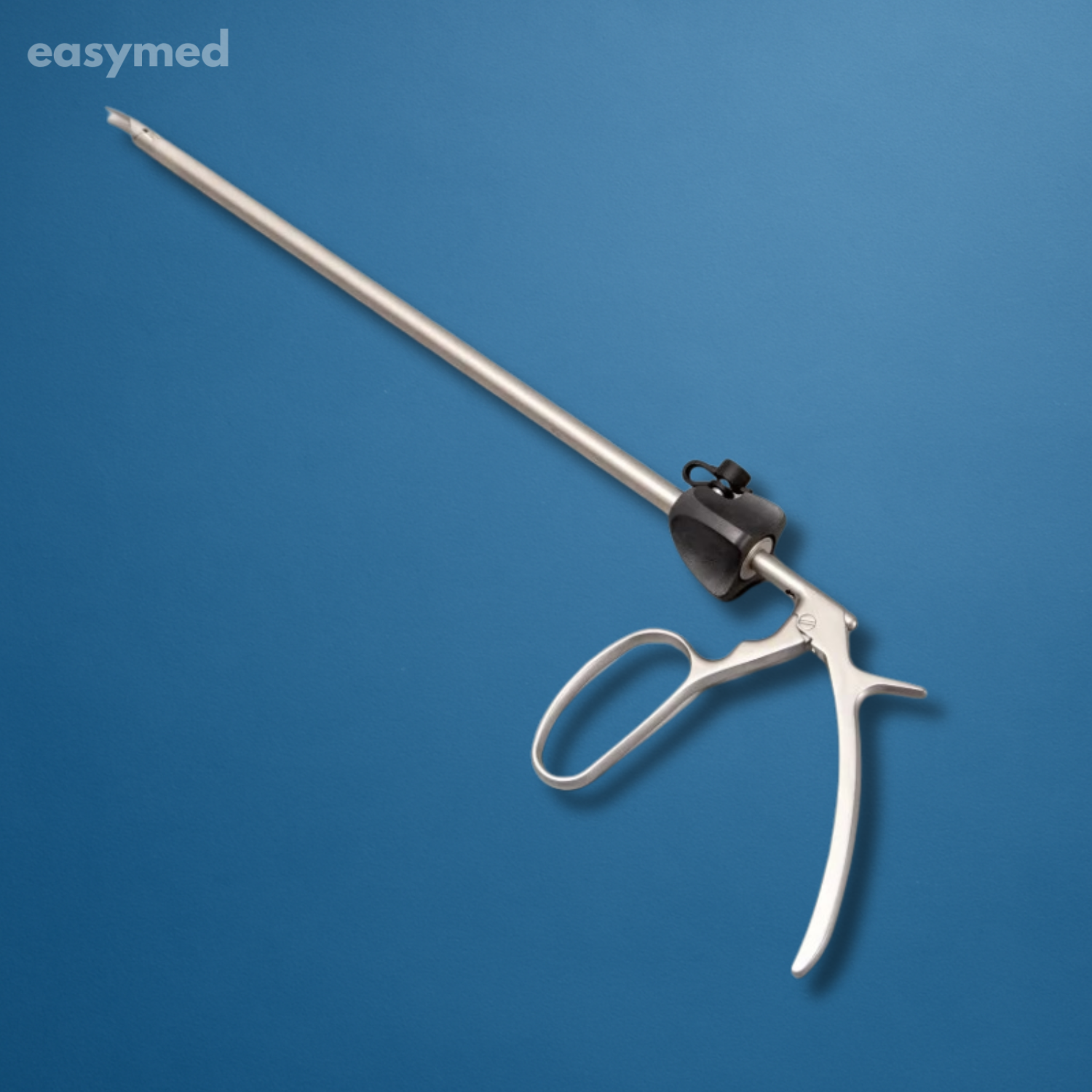 Aplicador de grapas de titanio LT400 para vasos de gran calibre en procedimientos laparoscópicos. Construido en acero inoxidable grado médico con vástago aislado PEEK; reusable y esterilizable en autoclave. Certificado CE.