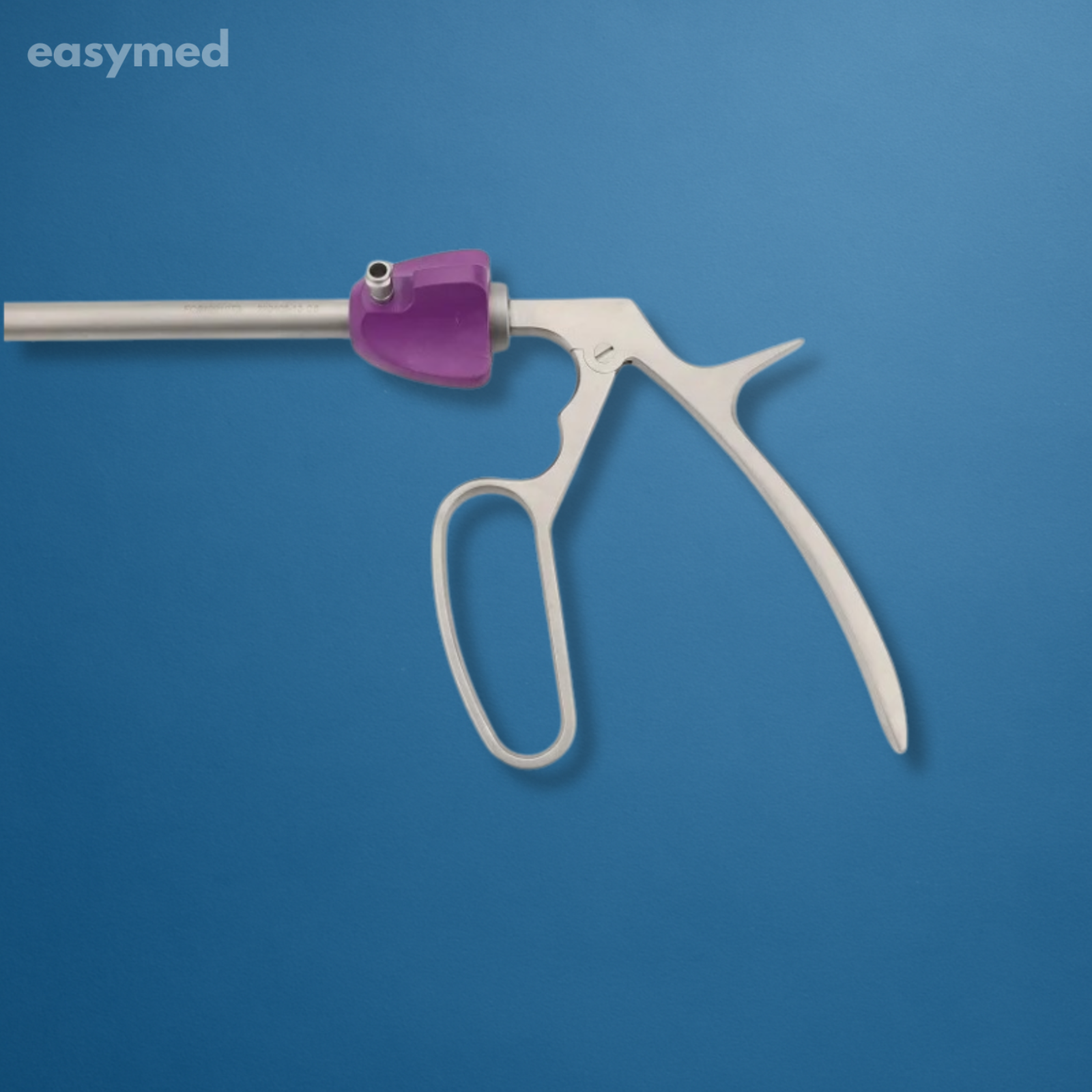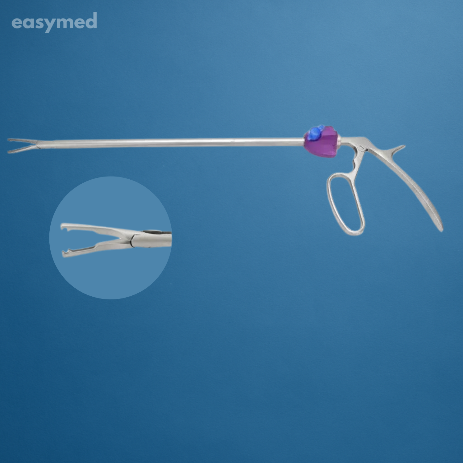 Aplicador Hem-o-Lok color morado (tamaño L) para ligaduras de vasos de mediano calibre en cirugías laparoscópicas. Construido en acero inoxidable de grado médico con vástago aislado PEEK; reusable y esterilizable en autoclave. Certificado CE.