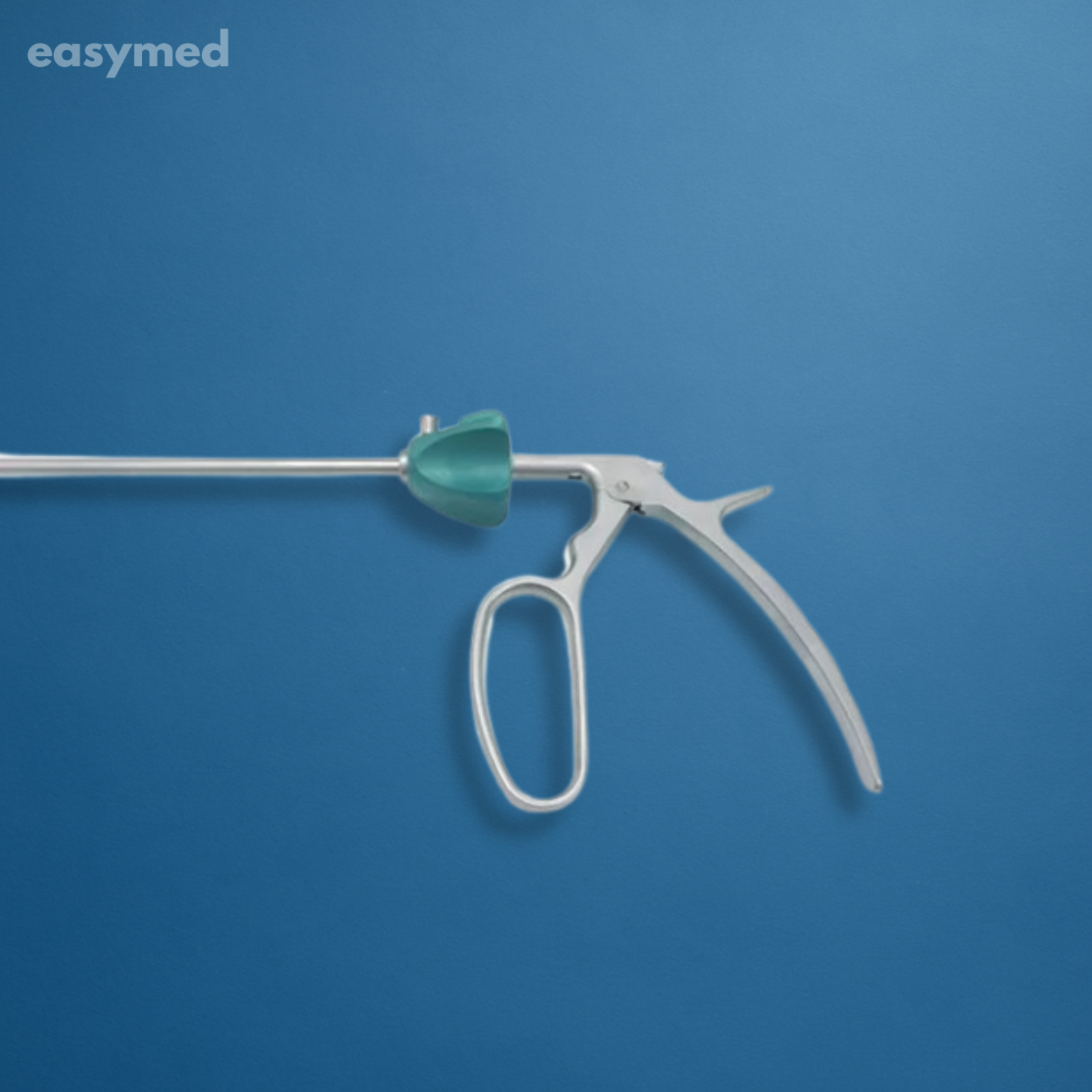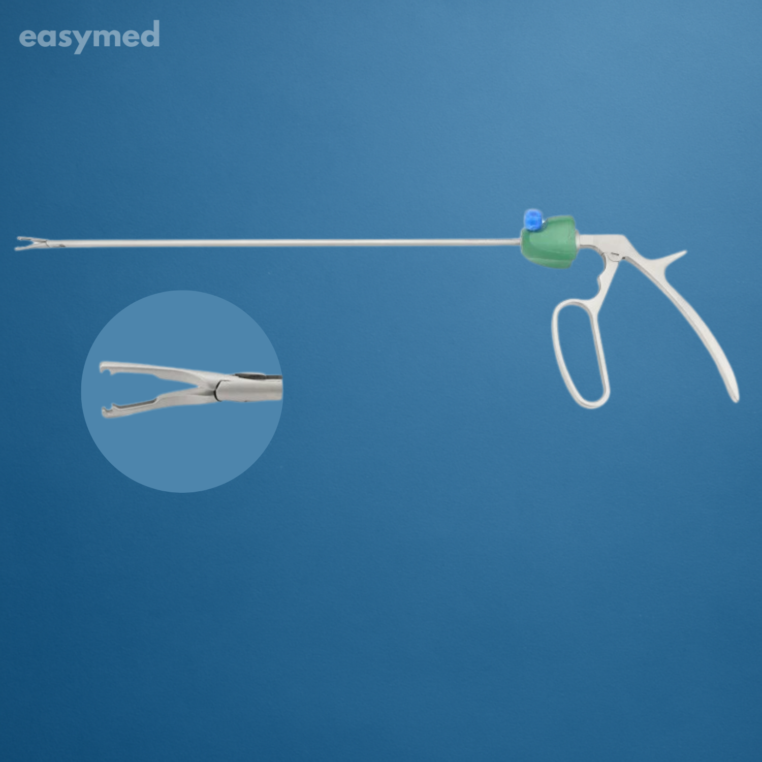 Aplicador Hem-o-Lok color verde (tamaño M) para cierre confiable de clips de polímero en procedimientos laparoscópicos. Fabricado en acero inoxidable 304 de grado médico con vástago aislado PEEK; reusable y esterilizable en autoclave. Certificado CE.