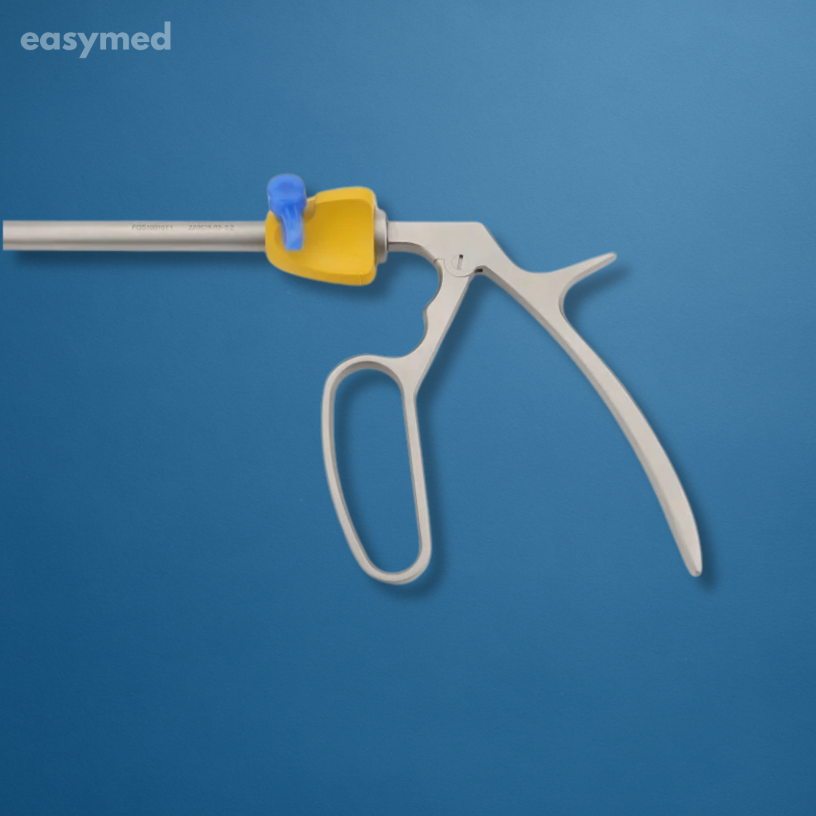 Aplicador Hem-o-Lok color dorado (tamaño XL) indicado para ligadura de vasos de gran calibre en laparoscopía. Fabricado en acero inoxidable grado médico con vástago aislado PEEK; reusable y esterilizable en autoclave. Certificado CE.