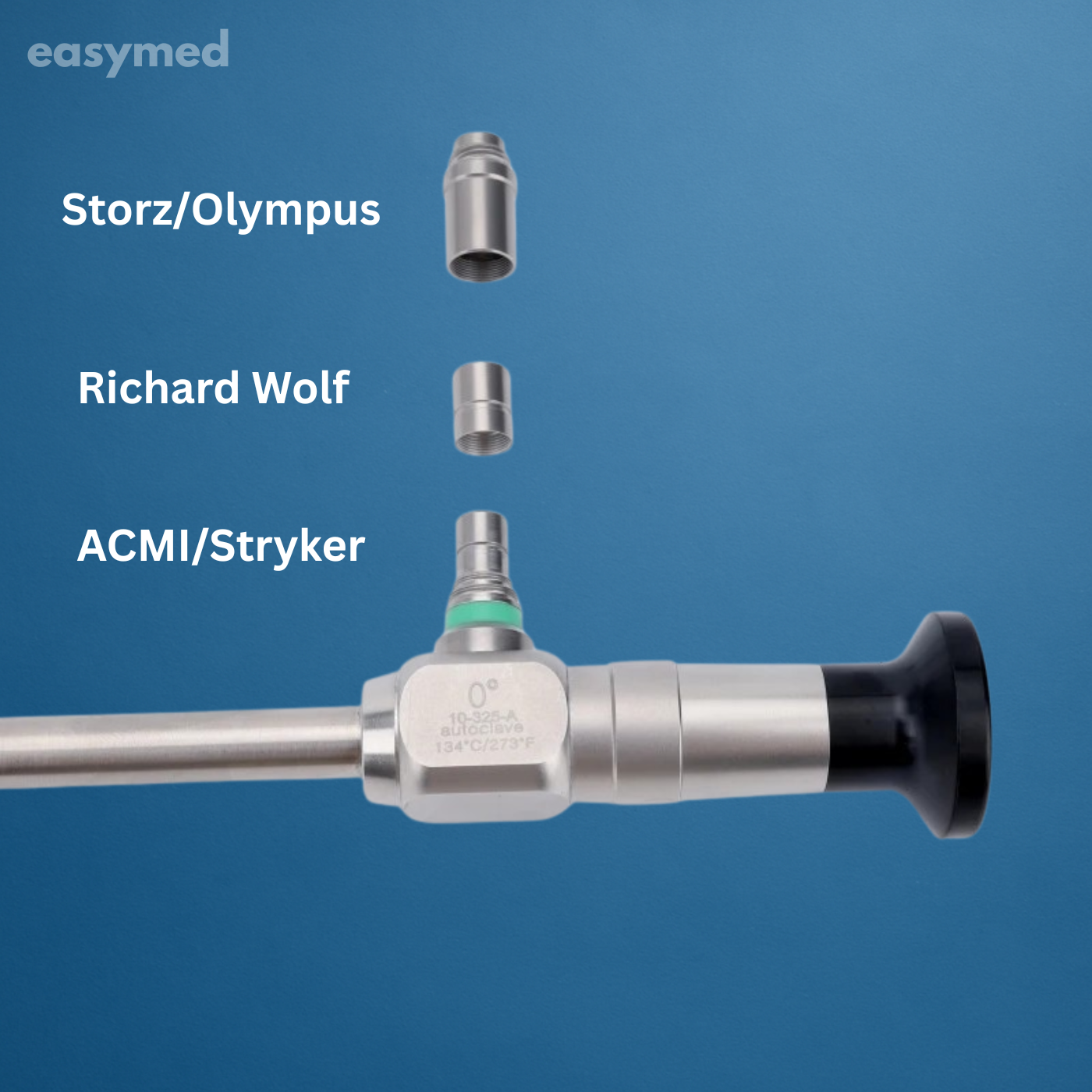 Lente laparoscópico rígido de 10 mm de diámetro y 32.5 cm de longitud, construido en acero inoxidable de grado médico. Óptica de varilla con lentes de vidrio alemán y cubierta de zafiro, esterilizable en autoclave. Disponible en 0° y 30°. Certificado CE e ISO.