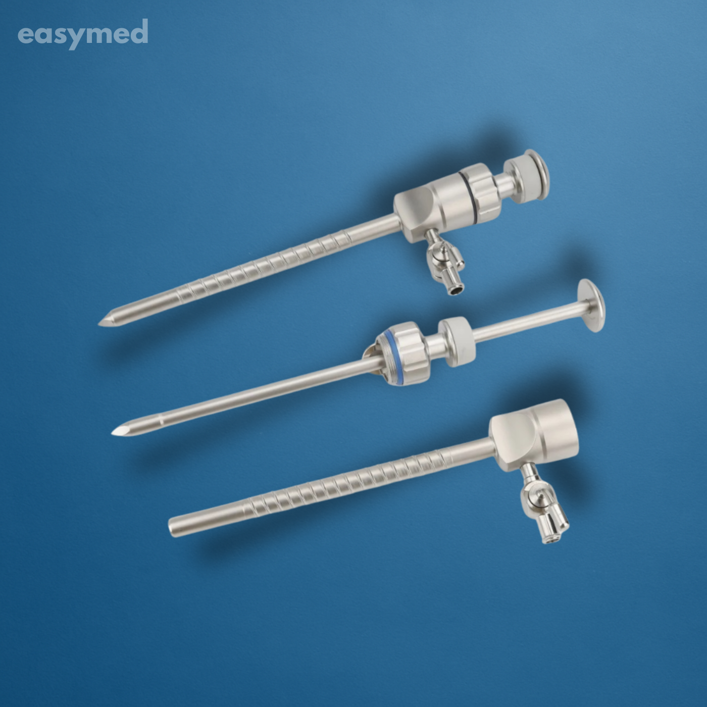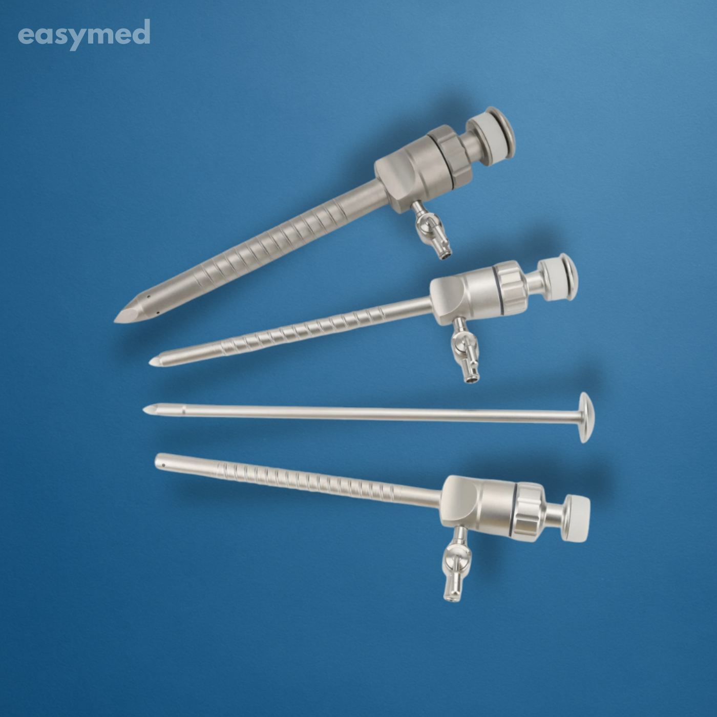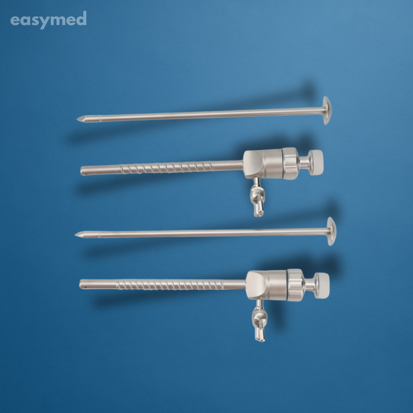 Trocar laparoscópico reusable con diseño roscado para anclaje firme y sellado magnético que evita fugas de CO₂. Fabricado en acero inoxidable grado médico, esterilizable en autoclave y con certificado CE.